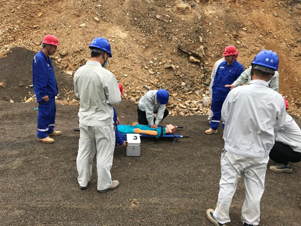 為提高員工對(duì)邊坡傷害事故的認(rèn)識(shí),掌握邊坡傷害事故形成原因、特性和預(yù)防等基本知識(shí),提高預(yù)防、搶險(xiǎn)救援能力,提高全員對(duì)突發(fā)事故的應(yīng)變能力,增強(qiáng)員工安全意識(shí)及自我保護(hù)意識(shí),減少或避免邊坡傷害事故對(duì)人身、生活、施工安全構(gòu)成的嚴(yán)重后果,保證馬院山石灰?guī)r礦安全生產(chǎn)。2020年5月22日兗州中材棲霞分公司與煙臺(tái)山水水泥有限公司聯(lián)合組織開(kāi)展邊坡傷害應(yīng)急救援演練。