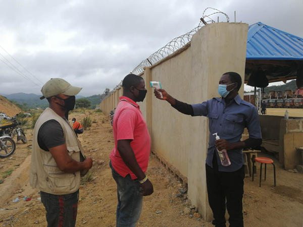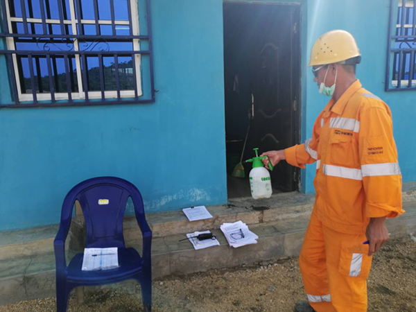 自新型冠狀病毒肺炎疫情發(fā)生以來,尼日利亞項目部領導按照公司統(tǒng)一安排,高度重視疫情防控工作,加強領導,根據(jù)當?shù)匾咔樾蝿?,把責任抗在肩上,抓在手中,采取有力措施,確保疫情防控和生產(chǎn)工作順利進行。堅持每天督查安全,督促生產(chǎn);實時通報國內疫情防控情況,及時了解尼日利亞的疫情動態(tài),加強疫情防范措施的宣傳,堅持涉外無小事原則,積極傳播正能量。同時,密切關注職工思想動態(tài),解決職工實際困難,穩(wěn)定隊伍保證生產(chǎn);項目部想盡各種方法聯(lián)系購買渠道購買防護口罩、消毒液、免洗手消毒液醫(yī)用酒精等,對宿舍,辦公室,工作場所等進行定期消毒。食堂增加每日的肉品供應量,增強職工的免疫力。營地大門口實行封閉式管理。多項舉措做好疫情防控和隊伍穩(wěn)定工作;同時項目部制定和完善各項應急預案,根據(jù)疫情的發(fā)展情況,適時啟動應急預案,做出相關決策。 主要措施: 1、項目部對外部進場人員實行嚴格準入制度,對符合疫情防控要求的人員準予進入工地。 2、對工地內工作人員(包括當?shù)貑T工),建立健康監(jiān)測制度,每天兩次對全部人員進行體溫測量和登記,發(fā)現(xiàn)發(fā)熱特別是伴有咳嗽、咽喉腫痛等狀況身體異常人員,立即采取隔離、送醫(yī)等應急處置措施。  當?shù)貑T工進場前體溫檢測  當?shù)貑T工洗手液消毒 3、做好宣傳教育工作,派發(fā)資料及宣傳疫情防控知識,加強個人衛(wèi)生教育。  新冠疫情知識宣傳教育   4、對配送材料、物資等外來人員,不得車輛進場后,車上人員出駕駛室,貨物、物資有項目部安排工地內人員接受和裝卸,并做好安全防護措施。  對外來材料及車輛消殺 5、做好防范措施,車間、礦區(qū)配備測溫槍、消毒液、口罩等應急防范物品,保持宿舍空氣流通,落實衛(wèi)生消毒制度,切實做好施工現(xiàn)場衛(wèi)生管理、個人衛(wèi)生防護,及時開展的病媒生物防治與消殺,有效降低病媒生物密度。  接送員工上下班車輛消毒  對考勤等記錄消毒  對現(xiàn)場工棚消殺 防疫物資儲備  生活物資儲備 6、安排專人實施24小時值班和項目部領導帶班,并保持通信通暢。 7、實行日報告和零報告制度,做到早發(fā)現(xiàn)、早報告、早隔離、早治療,分層隔離,及時落實。 |