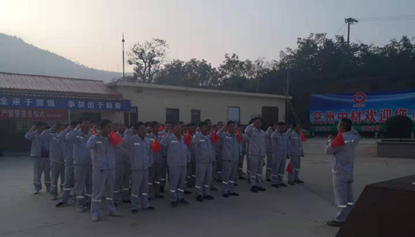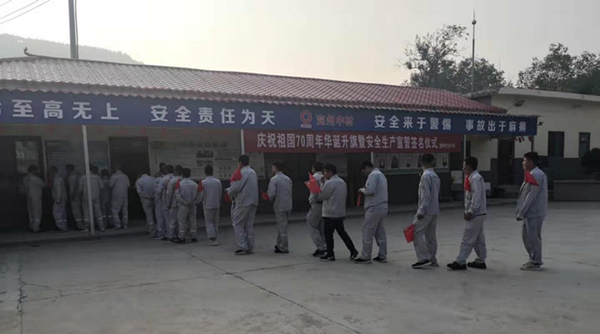 在這個秋高氣爽、瓜果飄香,到處洋溢著一片豐收景象的時節(jié),我們迎來了偉大祖國的70周年華誕。為慶祝祖國的生日,兗州中材蘭陵分公司在辦公生活區(qū),組織開展了以“愛國敬業(yè),安全發(fā)展”為主題的升國旗、安全生產(chǎn)宣誓等一系列活動。 “全體肅立,行注目禮,升國旗,奏唱國歌!”伴隨著嘹亮的國歌,五星紅旗冉冉升起,兗州中材蘭陵分公司全體人員,莊嚴肅靜,目光隨著紅旗升高。旗升至頂,全體人員注目禮畢,高呼“我愛你中國,祖國萬歲”。 祖國是大家,家庭是小家。每個員工的安全,決定著一個家庭的幸福團圓,進而牽動著祖國的和諧發(fā)展。因此,始終要把安全放在首位。“我宣誓:時刻牢記安全生產(chǎn)方針,遵守安全生產(chǎn)法律法規(guī),服從公司安全管理規(guī)定,認真履行安全生產(chǎn)責任,全面提高安全技能,讓家人放心,讓企業(yè)放心,做一名合格的員工!”錚錚誓言,從每名員工口中朗朗而出,飄蕩在礦山,回蕩在心田。