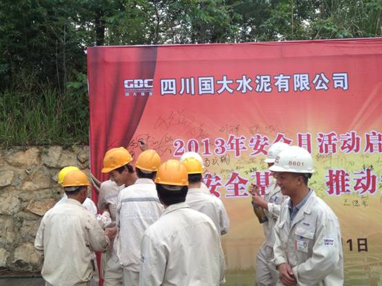 四川國大水泥舉行安全月啟動(dòng)儀式 6月1日,四川國大水泥有限公司舉行了以“強(qiáng)化安全基礎(chǔ),推動(dòng)安全發(fā)展”為主題的安全月啟動(dòng)儀式。江油市含增鎮(zhèn)安辦主任唐開文到會(huì)并講話。會(huì)議由國大副總鐘義主持,兗州中材國大礦山的全體員工也應(yīng)邀參加。 唐開文在講話中回顧了過去幾年國大水泥對安全生產(chǎn)作出的巨大貢獻(xiàn),他還表示,礦山現(xiàn)場的安全工作已成為江油市乃至綿陽市的一個(gè)安全示范亮點(diǎn),這與兗州中材的積極努力也是密不可分。國大安全經(jīng)理余德權(quán)在對安全生產(chǎn)諸方面作出重要指示后,也針對礦山安全施工提出更高的要求,希望兗州中材能將良好的安全工作習(xí)慣保持下去。會(huì)上,給全體員工發(fā)放了安全手冊。每位員工在安全月宣傳墻上簽名,這將會(huì)議推上了一個(gè)高潮。會(huì)后,員工們均表示:通過此次啟動(dòng)儀式,使得安全工作更加深入人心。對于安全生產(chǎn)的重視,時(shí)刻不敢松懈! 杜國賓