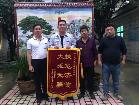 為表達(dá)寶豐分公司多年來(lái)對(duì)村莊的貢獻(xiàn)和對(duì)村民們的情誼,村委會(huì)特意送來(lái)了“大愛(ài)無(wú)疆,扶危濟(jì)貧”錦旗,以示感謝!