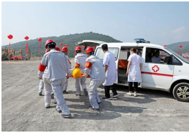 | 2022年7月1日上午,兗州中材呂梁分公司在礦山+1512m平臺(tái)舉辦中陽(yáng)縣2022年非煤露天礦山坍塌事故應(yīng)急演練。中陽(yáng)縣政府縣長(zhǎng)孫燕飛,縣委常委、政府副縣長(zhǎng)李靖現(xiàn)場(chǎng)觀摩演練。出席觀摩的還有中陽(yáng)縣應(yīng)急管理局劉輝局長(zhǎng)等政府部門負(fù)責(zé)人、各鄉(xiāng)鎮(zhèn)鎮(zhèn)長(zhǎng)以及中陽(yáng)縣非煤企業(yè)的主要負(fù)責(zé)人等59人。