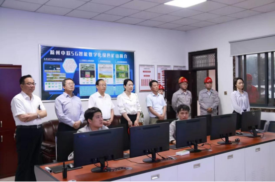 隋同波一行首先參觀了礦山5G智能控制室,并認(rèn)真聽(tīng)取了關(guān)于5G智能數(shù)字化綠色礦山建設(shè)情況匯報(bào)。