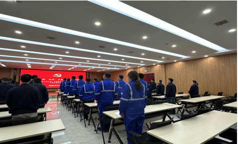 活動開始,全體人員起立奏響國歌 會議上總經(jīng)理助理吳新海傳達了中材礦山黨委要求,強調(diào)促進地域黨支部在“黨建+業(yè)務(wù)”共建中實現(xiàn)資源共享、業(yè)務(wù)互聯(lián)、優(yōu)勢互補、交流互促、發(fā)展共贏,構(gòu)建“共建、共促、共贏”的區(qū)域化黨建新格局。 要求通過活動,進一步達成區(qū)域協(xié)同,促進業(yè)主方和施工方深度融合,通過黨建引領(lǐng),讓我們在安全、管理、形象建設(shè)、專業(yè)技能等各方面得到全面的提升,讓我們在和諧奮進的環(huán)境中取得更好的成績。通過持續(xù)性的溝通交流和不斷地完善提升,把我們的礦山建造成“安全的、美麗的、低碳的、智慧的”生態(tài)礦山。