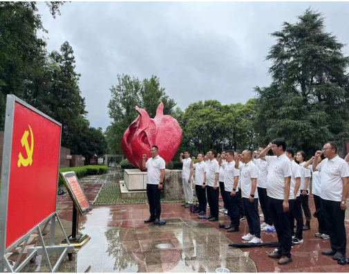 29日,共同前往紅色大別山,在鄂豫皖蘇區(qū)首府革命烈士紀(jì)念館中,以傾盆大雨寄哀思,拾級(jí)而上,同志們身著白色上衣整齊列隊(duì)肅立在革命烈士紀(jì)念碑廣場(chǎng),面朝莊嚴(yán)肅穆的紀(jì)念碑,在宋道明同志的帶領(lǐng)下,全體低頭默哀,沉痛哀悼英勇犧牲的烈士,并共同向烈士敬獻(xiàn)花籃,同志們莊重的舉起右手,面對(duì)鮮紅的黨旗,“我志愿加入中國(guó)共產(chǎn)黨,擁護(hù)黨的綱領(lǐng)……永不叛黨。”在鏗鏘有力的誓詞中,重溫入黨初心,同志們初心受到洗禮,理想信念更加堅(jiān)定。